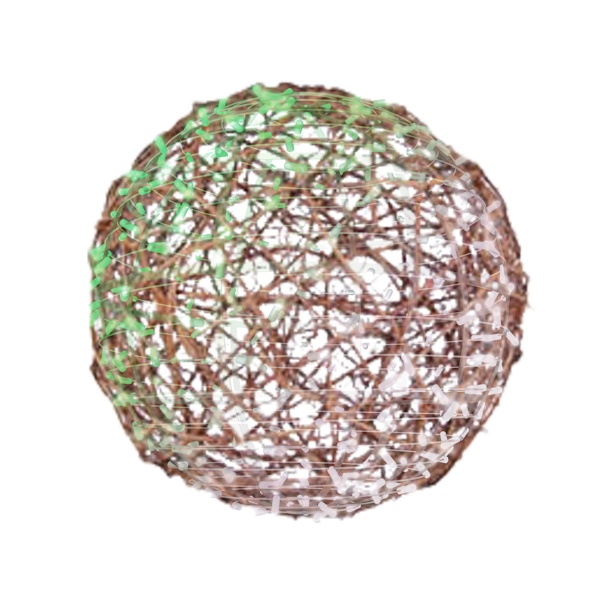 Infinity Grapevine Sphere is decorated with adjustable, color-changing lights that you can control with your smartphone. Spheres can be displayed on their own, in groups of spheres, or with other light show decorations.